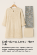 • Fabric: Lawn (Shirt), Cambric (Trousers), Chiffon (Dupatta)